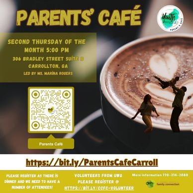 The next Parent's Café is on second Thursday of the month at 5 pm